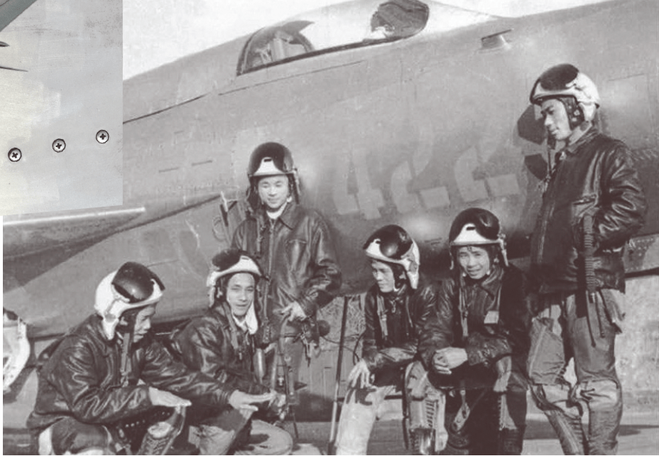 Pilot Nguyen Nhat Chieu (seated on the left) discussing the battle with his comrades (from left to right): Dong Van De, Pham Thanh Ngan, Hoang Bieu, Mai Van Cuong, and Dang Ngoc Ngu (December 1966).